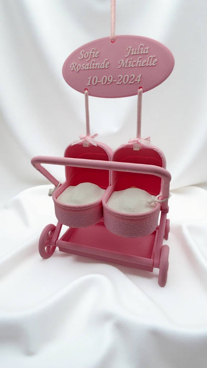Voor die unieke momenten waarop twee kleine wondertjes tegelijk worden verwelkomd, hebben we — op verzoek van een enthousiaste tweelingmoeder — iets speciaals ontworpen: onze 3D-geprinte mini kinderwagentjes voor een tweeling. Liefdevol geprint in duo, met ruimte voor kleurkeuze en persoonlijke details. Want voor tweelingen is er verrassend weinig te vinden — en elk klein moment verdient het om groots gevierd te worden.
